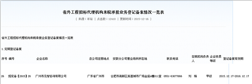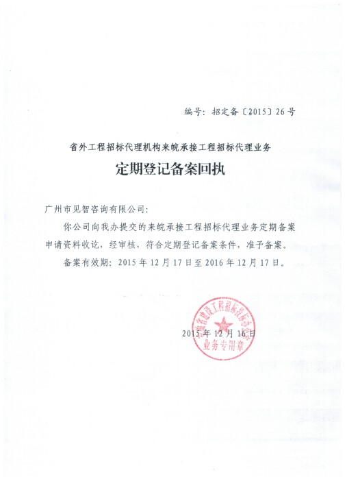 廣州市見智咨詢有限公司順利完成進(jìn)皖延續(xù)備案