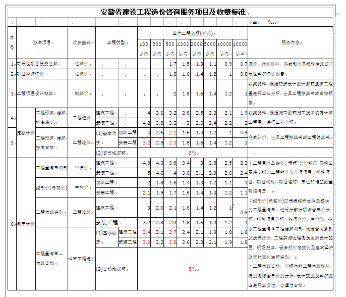 ⒍本收費標(biāo)準(zhǔn)中的“建筑工程”適用建筑工程及配套的裝飾工程、安裝工程;市政工程等?!鞍惭b工程”適用單獨安裝工程、裝飾工程(含二次裝飾裝修);房屋修繕;園林綠化及仿古建筑工程等。